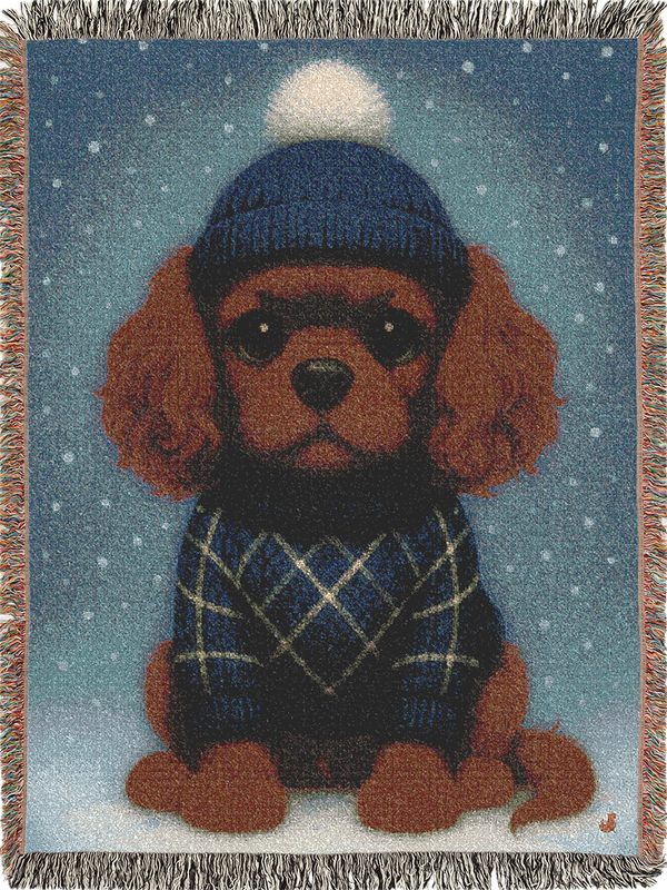 The collection begins with woven blankets and tote bags, each designed to reflect a distinct coat color; Ruby, Blenheim, Tri-Color, and Black & Tan. More pieces are on the way, crafted for those who see their Cavaliers not just as pets, but as family, muses, and daily reminders of unconditional love.