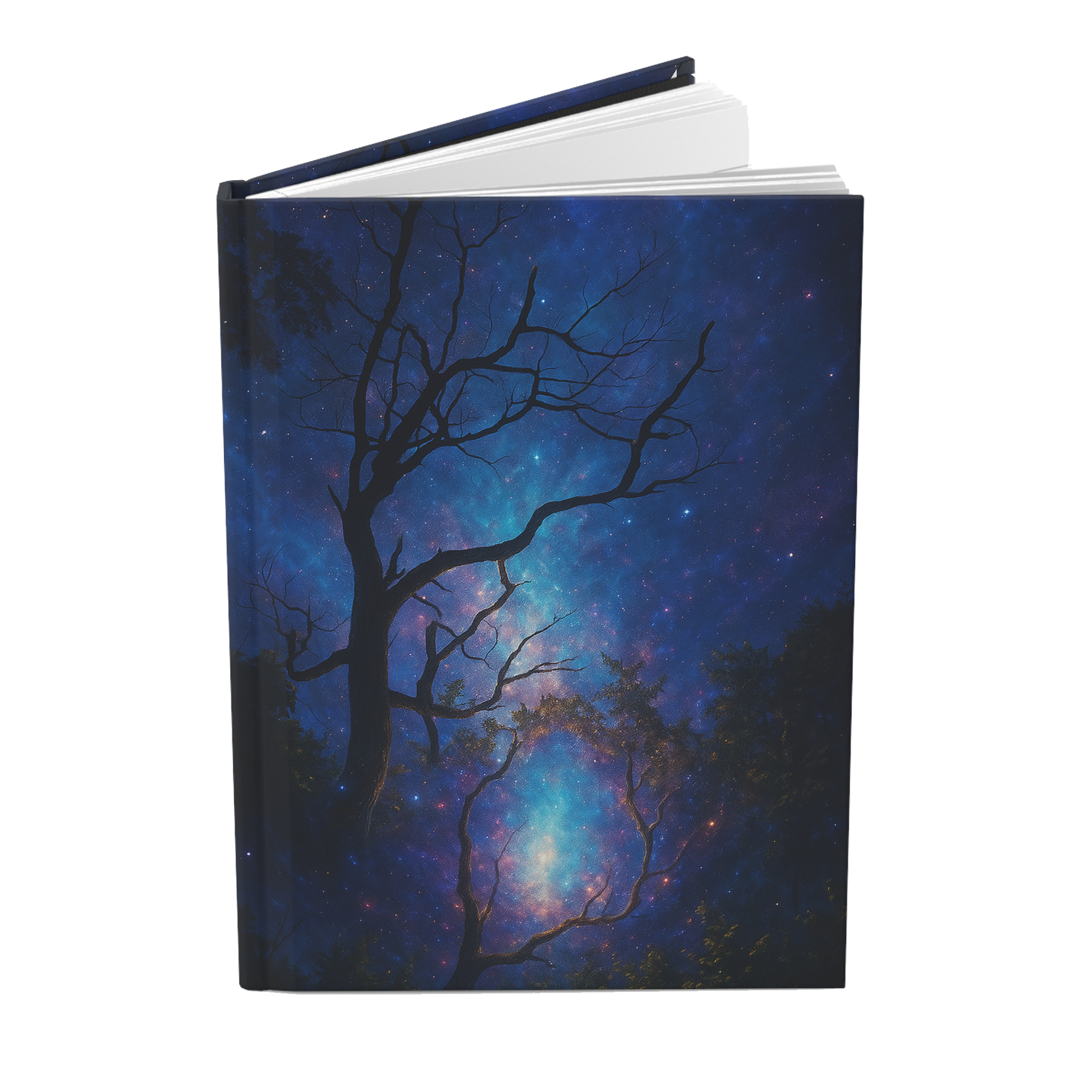 - Matte laminated cover with full wraparound cosmic forest print